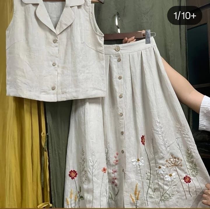 Conjunto Bordado no Linho
